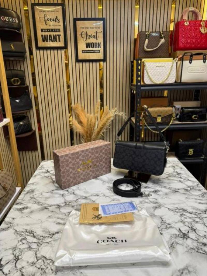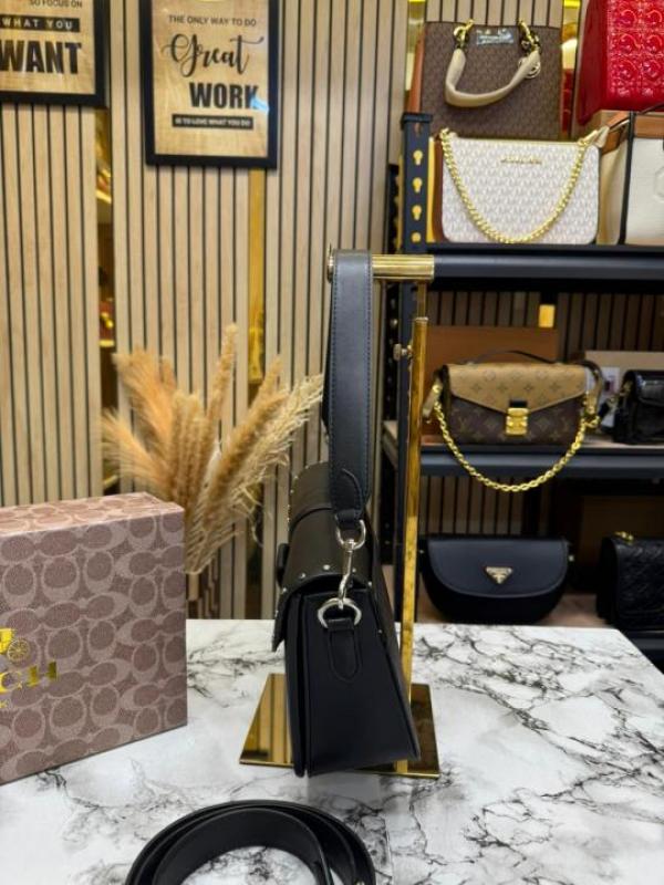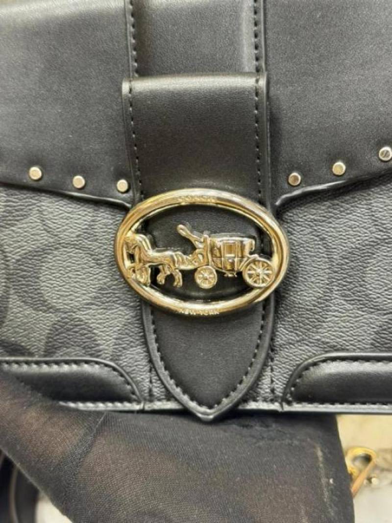 COAC_H GEORGIE SHOULDER BAG IN COLORBLOCK SIGNATURE CANVAS WITH RIVETS & OG BOX AND DUST BAG (BLACK)