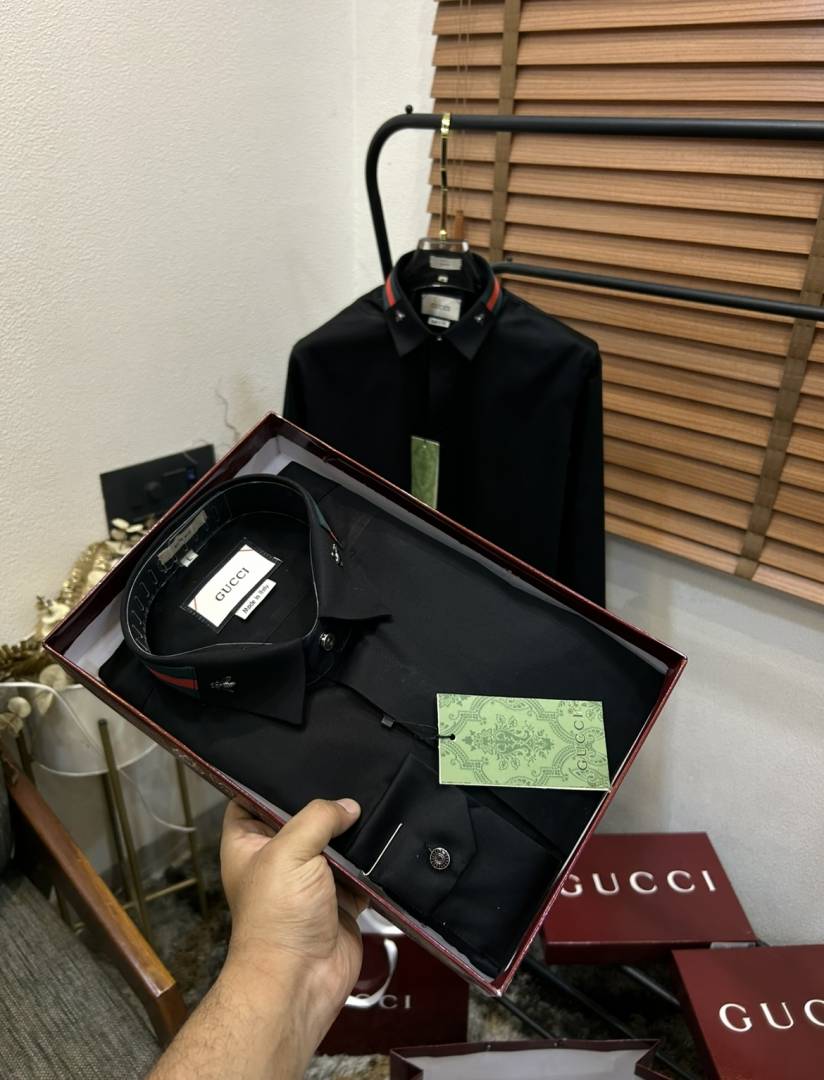 Gucc_i Bee Collor Imported Partywear Shirt With Og Box & Bag (DN 538)