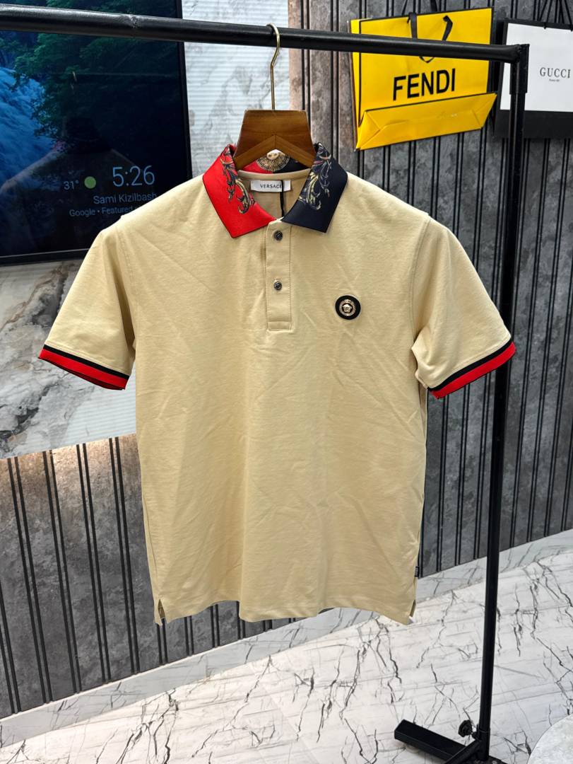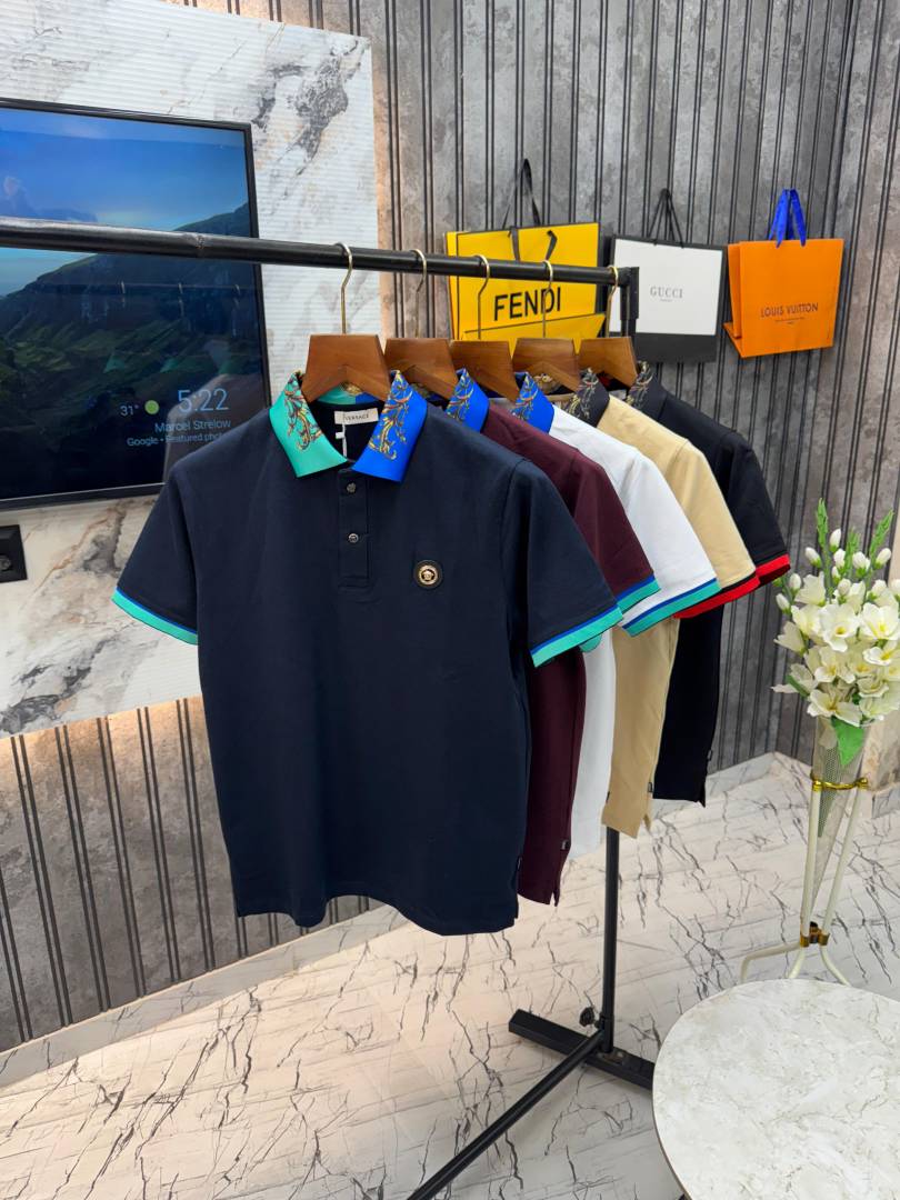 Versace Imported Matty Cotton Lycra Fabric Front Metal Logo Ribbed On Collar Very Premium Polo Neck Tshirt